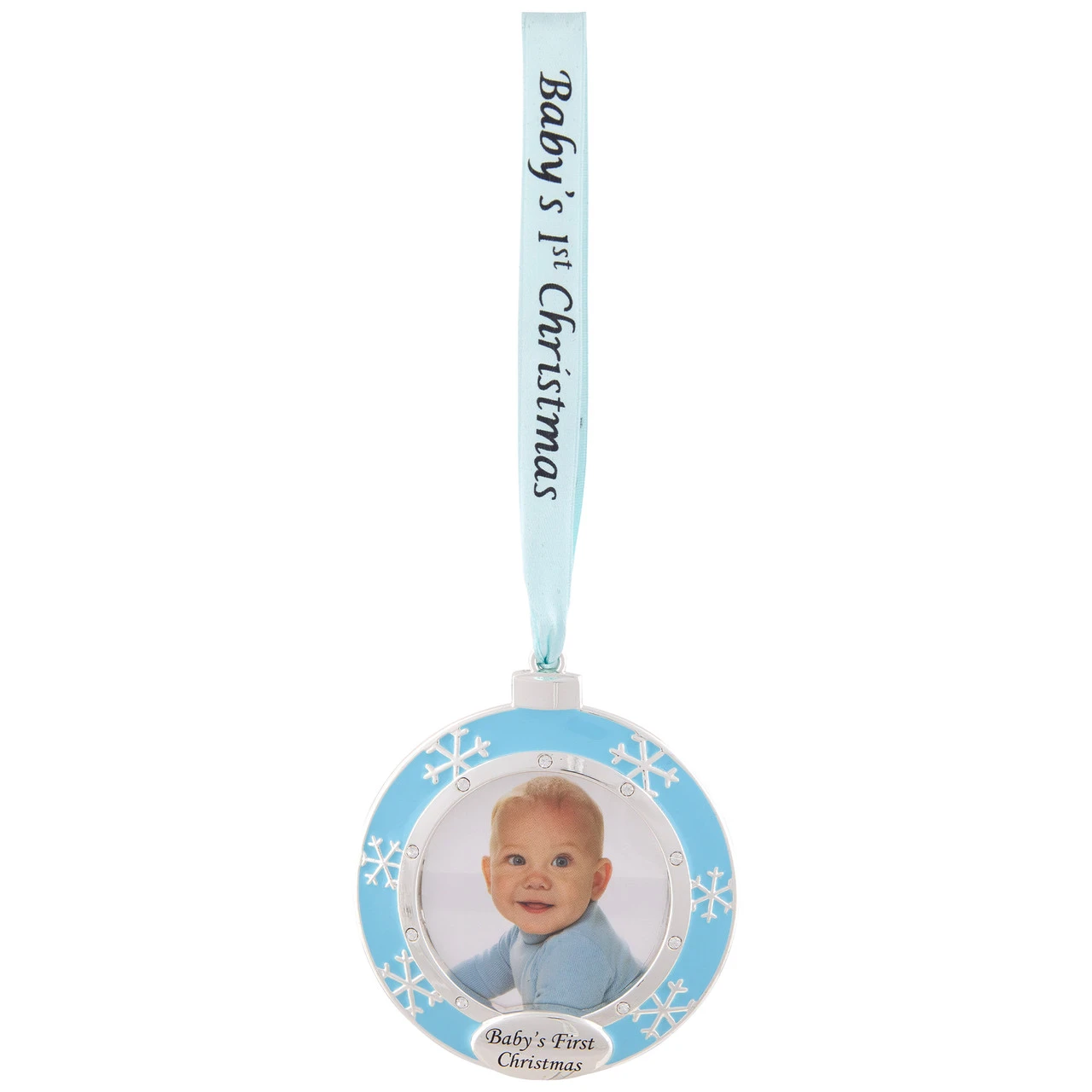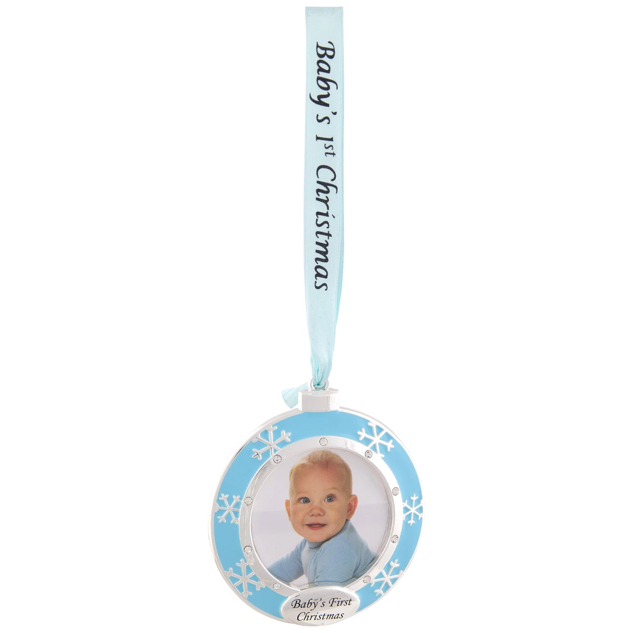 The blue hanging ribbon also reads Baby’s 1st Christmas