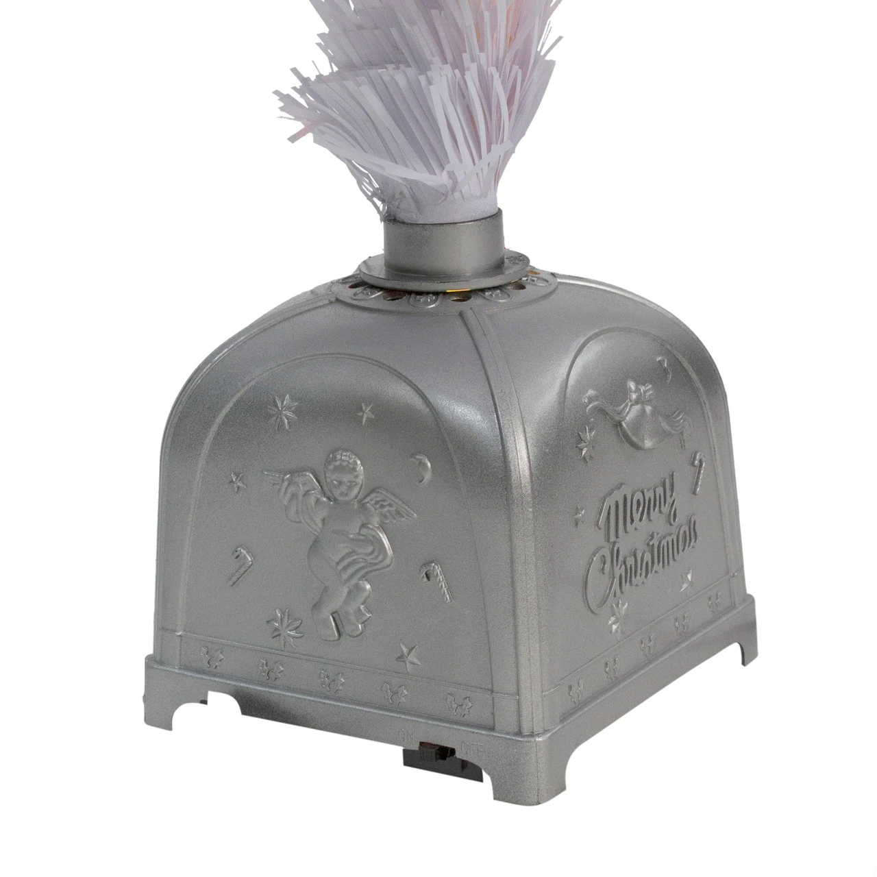 Includes an attached silver tree stand with an on/off switch