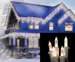 150ct Blue & Clear Mini Icicle Christmas Lights – White Wire