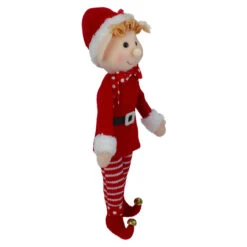 12″ Red And Green Bendable Elf In A Suit Hanging Christmas Ornament