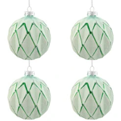 4ct Green Clear Glass Christmas Ball Ornaments 4.75″ (120mm)