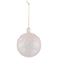 3″ White And Green Holiday Wagon Hand Painted Round Glass Hanging Christmas Ornament