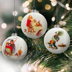 Set Of 3 Arctic Family Adventure Wooden Christmas Ornaments 5.5″
