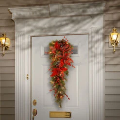 36″ Wintry Pine Battery Operated Artificial Christmas Mailbox Swag – Warm White LED Lights