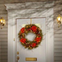 24″ Pre-lit North Valley Spruce Artificial Christmas Wreath – Dual Color LED Lights