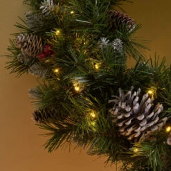 24″ Pre-lit Maple Berries And Cones Artificial Christmas Swag – Warm White LED Lights