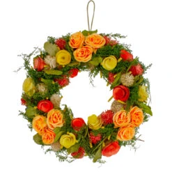 Yellow And Orange Berry And Leaves Fall Harvest Artificial Wreath – 24-Inch, Unlit