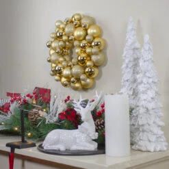 Vegas Gold 3-Finish Shatterproof Ball Christmas Wreath, 13-Inch