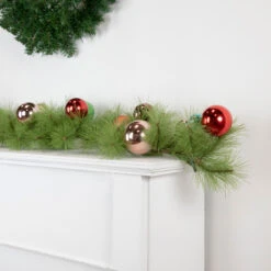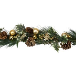 9′ Mixed Spruce Pre-Lit Clear LED Artificial Christmas Garland With Frosted Branches And Red Berries