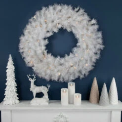 Pre-Lit White Alaskan Pine Artificial Christmas Wreath, 36-Inch, Warm White LED Lights