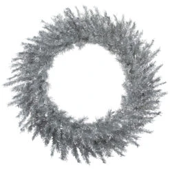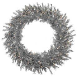 36″ Pre-Lit Silver Tinsel Artificial Christmas Wreath, Clear Lights